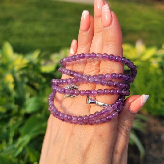 Amethyst Bracelet - 4mm Beads - Stress Relief, Healing, Intuition