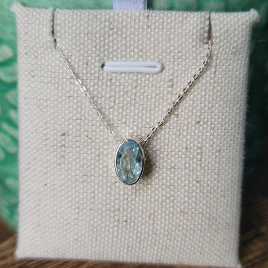 Aquamarine Faceted Pendant 01 | .925 Sterling Silver Chain