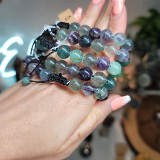 Fluorite Adjustable Bracelet - 10mm Beads - energy, focus, clarity