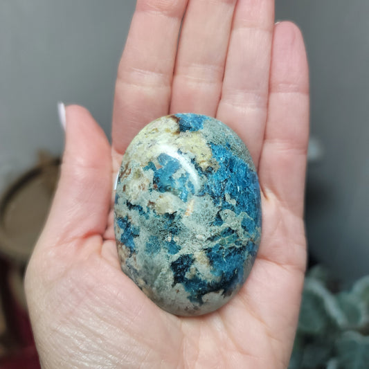 Blue Apatite Palmstone – Hand-Carved & Polished (Brazil)