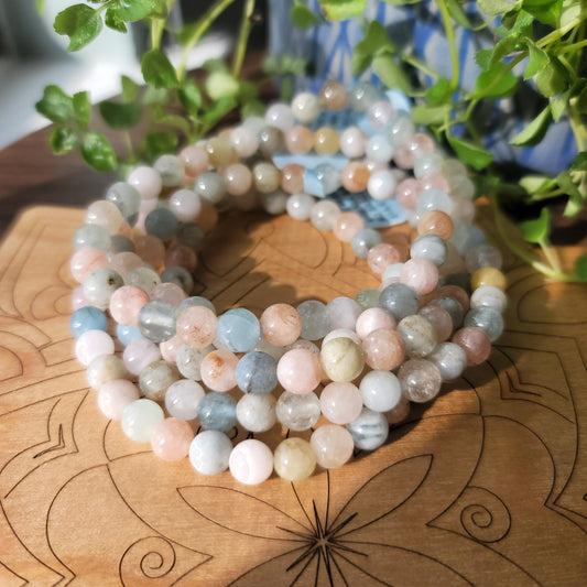 Mixed Beryl (Aquamarine/Morganite) Beaded Bracelet - 6mm Beads - Calming, Loving, and Uplifting