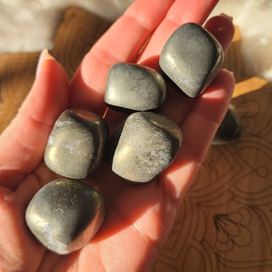 Pyrite is a brassy, pale, metallic gold color and is composed of iron sulfide. It's often called Fool's Gold, but its anything but. Pyrite forms in some of the most interesting natural structures, including nearly perfect cubes and octahedrons. Metaphysically, Pyrite is known for wanting to protect you in every way while also being a stone of good luck that attracts good fortune, wealth, and abundance.