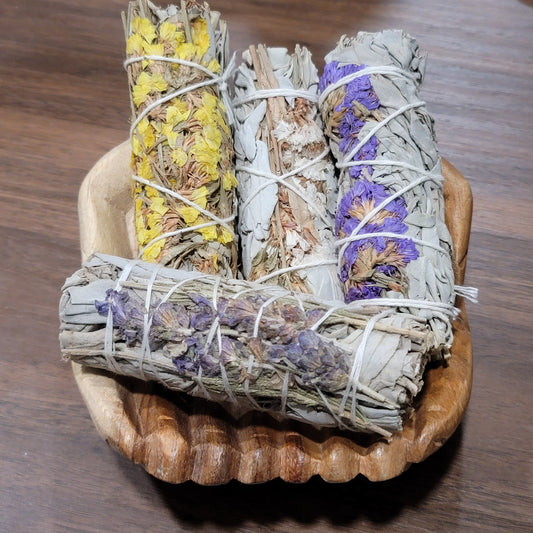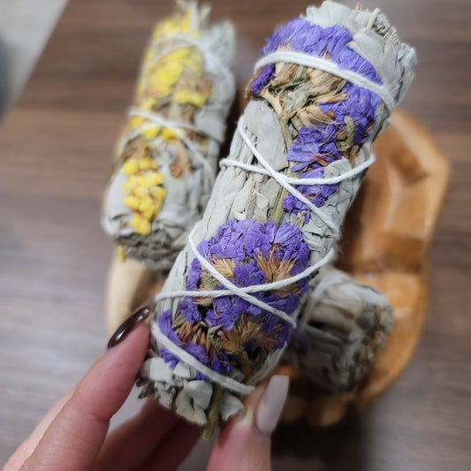 California White Sage & Sinuata Flowers 4" Smudge Wand, Cleansing Ritual/Tool