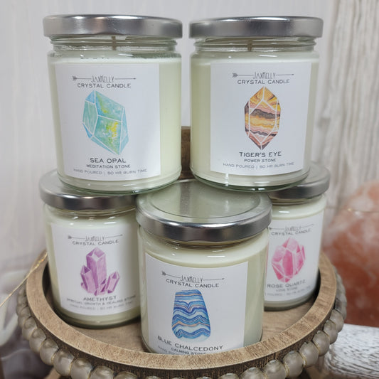 Tiger's Eye Crystal-Infused Soy Candle (9 oz.) – Hand-Poured with Love in California